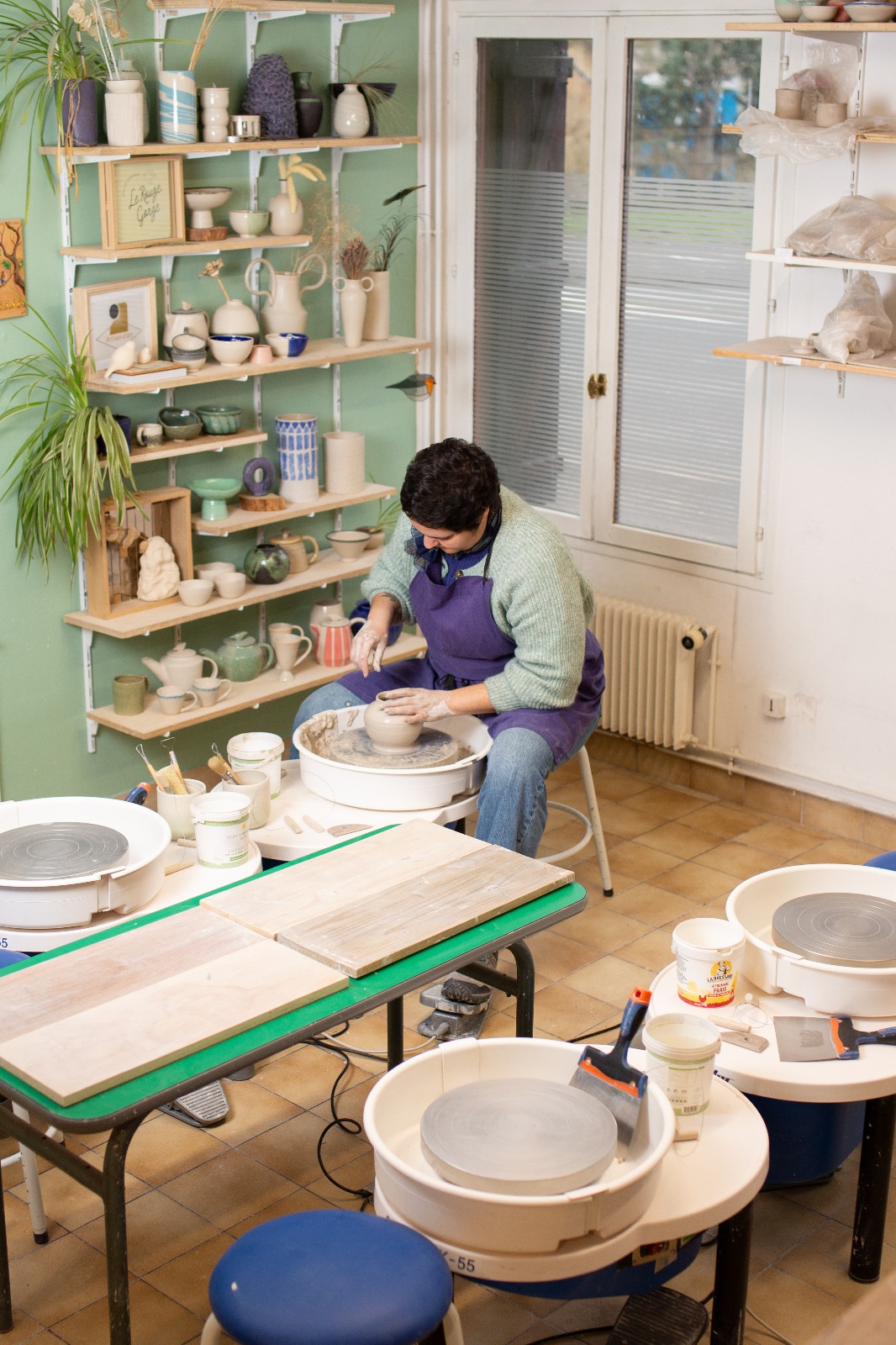 Je vous accueille dans mon atelier, où je crée des pièces uniques et propose des cours de tournage et de modelage.